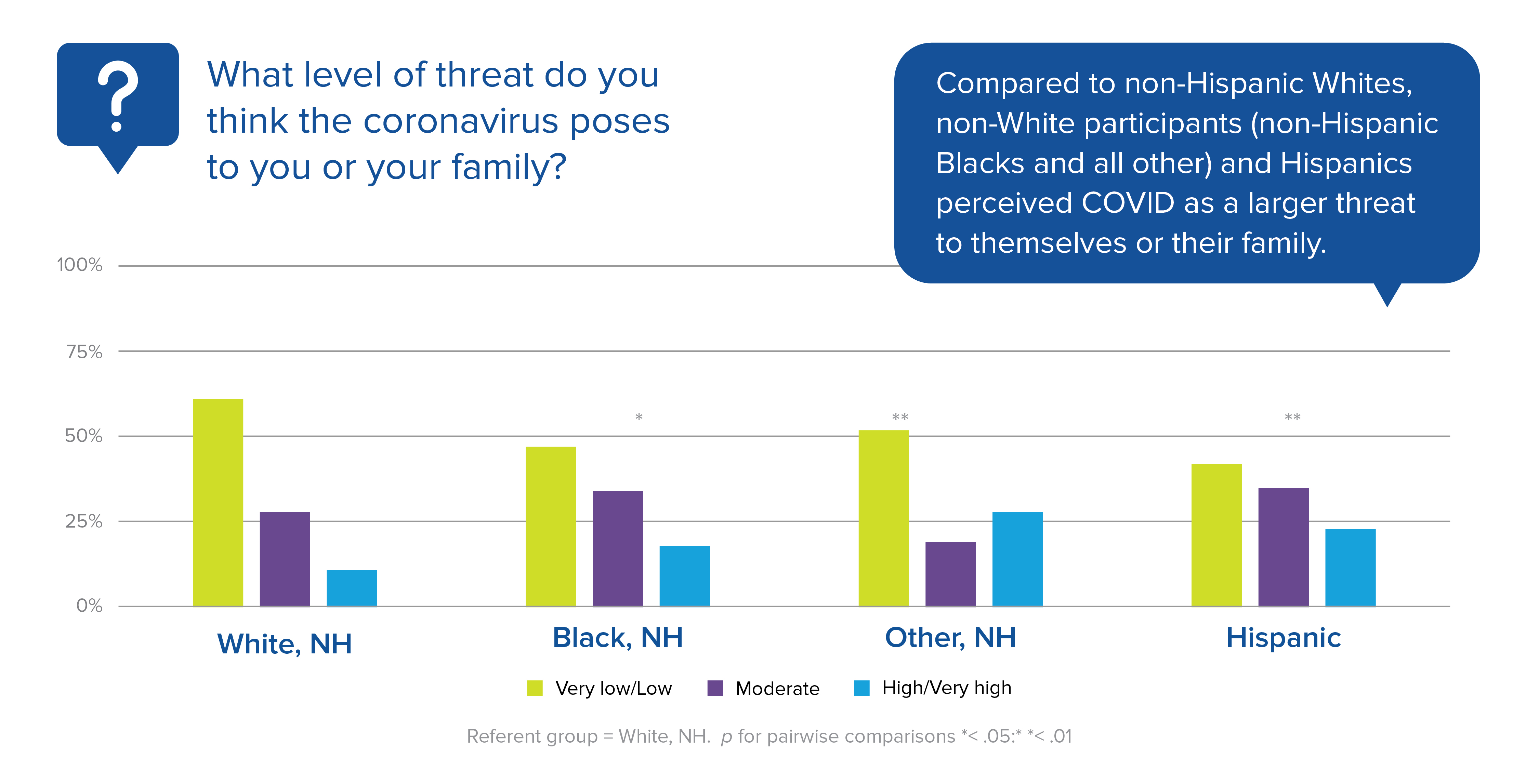 Non-White participants also perceived COVID as a larger threat to themselves or their families.