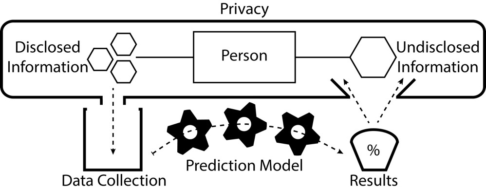 Most individuals interact with AI technologies created by corporations, and corporations define the rules for using their technologies via Terms of Service agreements. Many issues can begin to emerge when evaluating these agreements under the ethical concepts listed above. For example, companies often retain the right to change their Terms of Service agreements, so a user may agree to certain data retention conditions but then find that the originally agreed upon terms are no longer the active terms of use. Depending on the situation, the company may not provide clear communication about the change and the user could have false expectations. In situations where companies are using an individual’s data in research or to predict something about them, this could be problematic under the lens of expectations in informed consent. As shown in Figure 1, an individual may knowingly disclose certain personal pieces of information, but they may do so without knowing that the disclosed information will be used to predict something undisclosed.