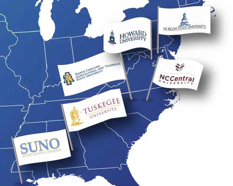 The awarded HBCUs, shown in the below graphic, stretch from Maryland to Louisiana and include Howard University, Morgan State University, North Carolina A&T State University, North Carolina Central University, Southern University at New Orleans and Tuskegee University. Each institution will support researchers for a year and can welcome visiting students and faculty from other HBCUs to participate.