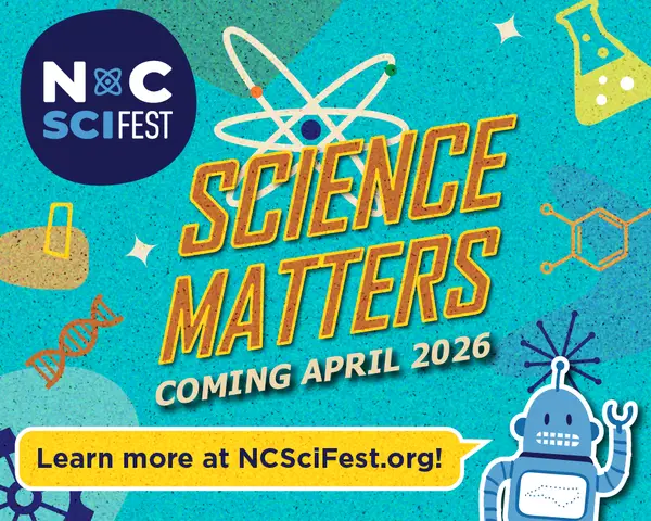 NCSciFest runs throughout the month of April each year and celebrates science's educational, cultural, and economic impact in our state. This year's theme, "Science Matters," reflects how science touches every part of daily life in North Carolina. NCSciFest will feature a range of activities, from field trips and lab tours to large-scale community events.