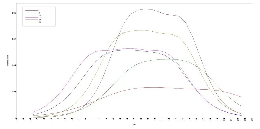 Further, selection of the items for the newly proposed DASS-6 was based on three criteria. First, item selection was prioritized by the rank-ordering of item information function values at the mean of the NA scale for the most severe diagnostic grouping (i.e., depression diagnosis; see Results section) as recommended by Wyse and Babcock (2016) when maximizing classification accuracy with short forms. Second, priority was given to items that were invariant across all four predictors of DIF. Finally, conditional of the 1st two priorities, two items each were selected from the depression, anxiety, and stress subscales to maximize representation of all three disorders, given the criterion variables were the three diagnoses.