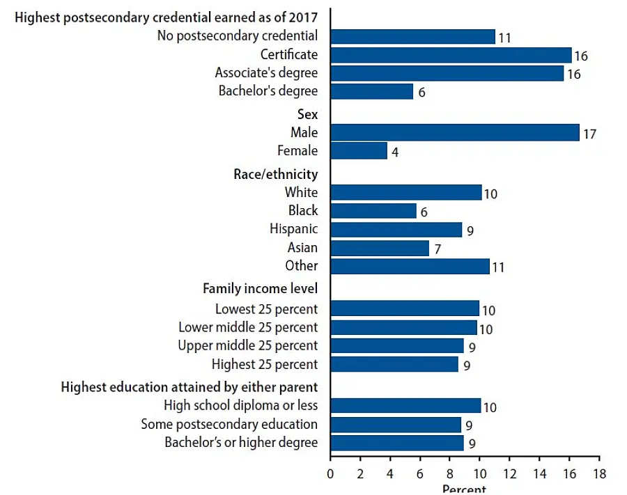 Source: US Department of Education, National Center for Education Statistics, 2012/17 Beginning Postsecondary Students Longitudinal Study (BPS:12/17).