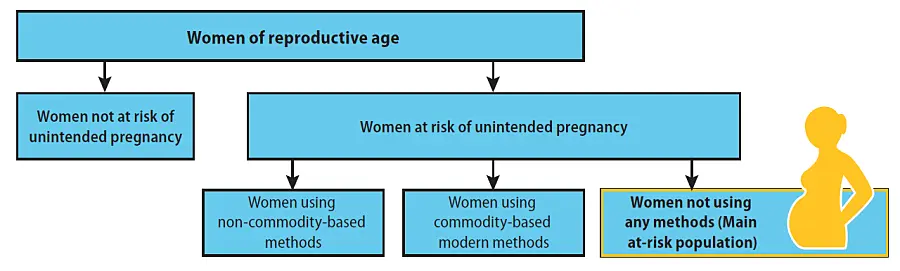 c Number of WRA at risk of pregnancy who do not want to become pregnant and are not using any FP method. Does not include abstinent WRA.