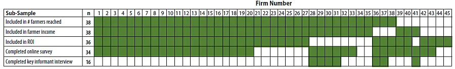 Our analysis shows a positive return on USAID’s investment in terms of farmers reached and farmer income generated. This is a conservative, lower-bound estimate, only representative of what was achieved and tracked during the period of USAID’s investment, which averaged less than 2 years per grant. Given that the supported business models were designed to sustain over time without additional donor support, we can reasonably expect the same levels of farmer income to continue in future years. Farmer income is measured only based on sales reported to VCCF firms. Farmers are likely to have other income from intercropping and multiple harvest seasons per year not related to the VCCF. Farmer income does not necessarily reflect farmer profits, because we had no way to estimate the costs of labor and inputs for farmers.